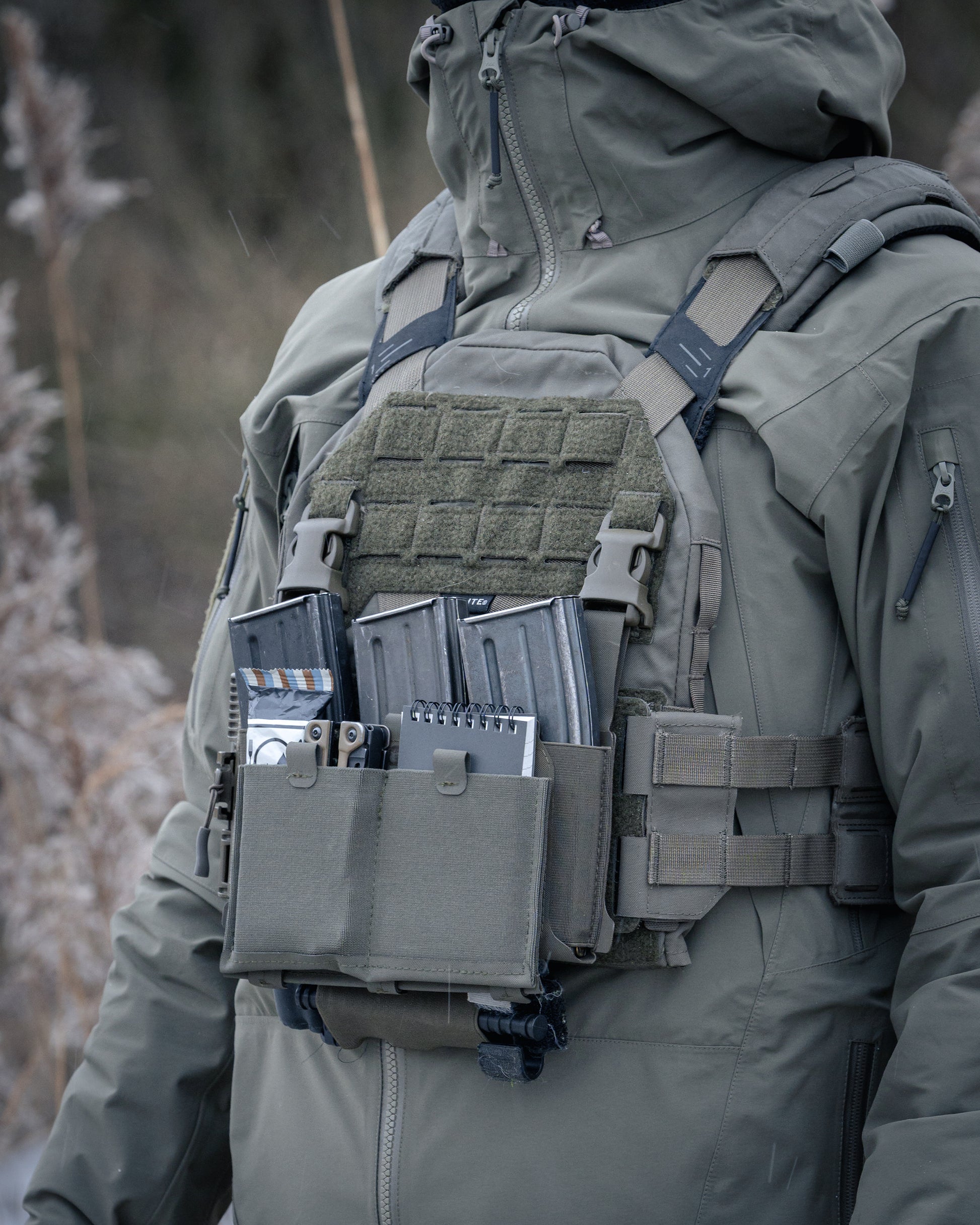 UltraFlat är utvecklad för att ge maximal funktion med minsta möjliga profil. Konstruktionen är framtagen för att ligga extremt plant mot bärsystemet och minimera både signatur och onödig volym, utan att kompromissa med hållfasthet eller åtkomst.